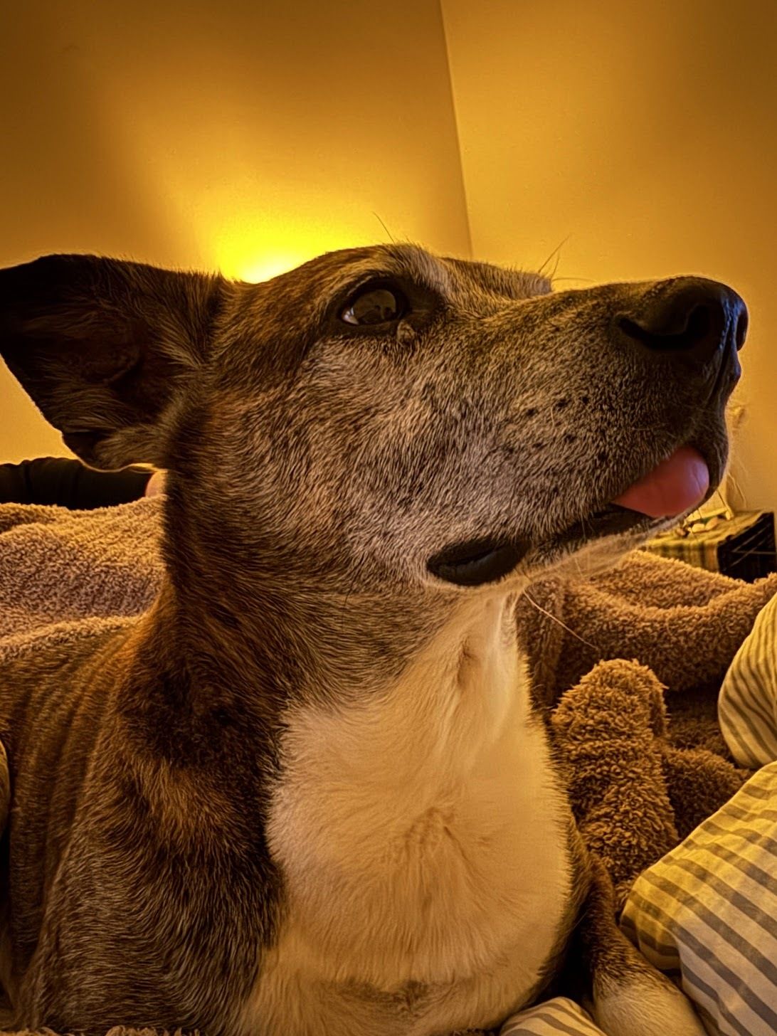Peach, the mascot of this newsletter, not exactly being curious but posing in a way that makes her look kind of majestic.