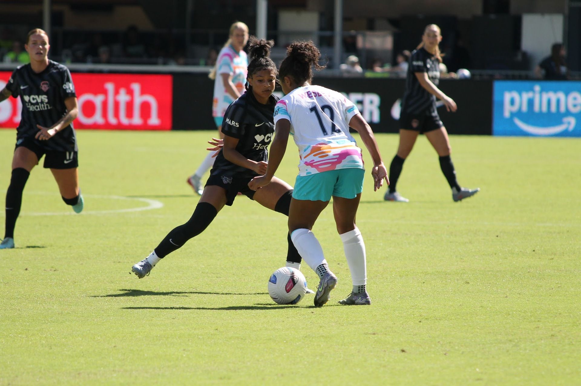 In the 5th minute of stoppage time, San Diego struck, with forward Kyra Carusa slipping a ball between multiple Spirit defenders to find Delphine Cascarino, who put one foot forward to slide it past Washington goalkeeper Aubrey Kingsbury. San Diego did not have a single shot on goal in the game to that point but made their first chance count, leveling the score at 1-1.