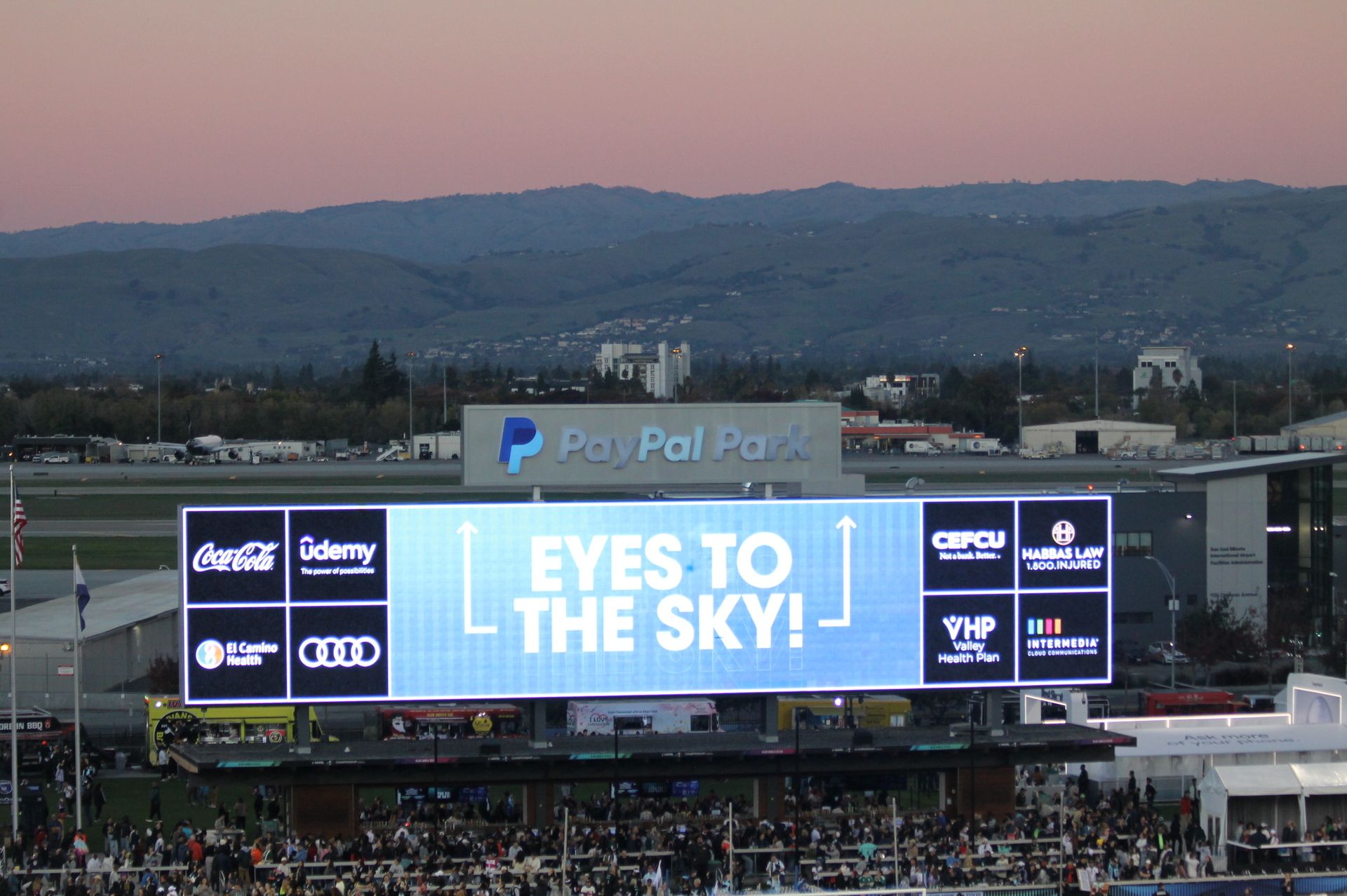 (Also side note: shoutout to both Sarah and her producer Alex, who ended up being my neighbors high above PayPal Park in the spillover press box space at the very top of the stadium. They do great work, even when the pillars that literally hold up the roof over the grandstand were getting in their way.)