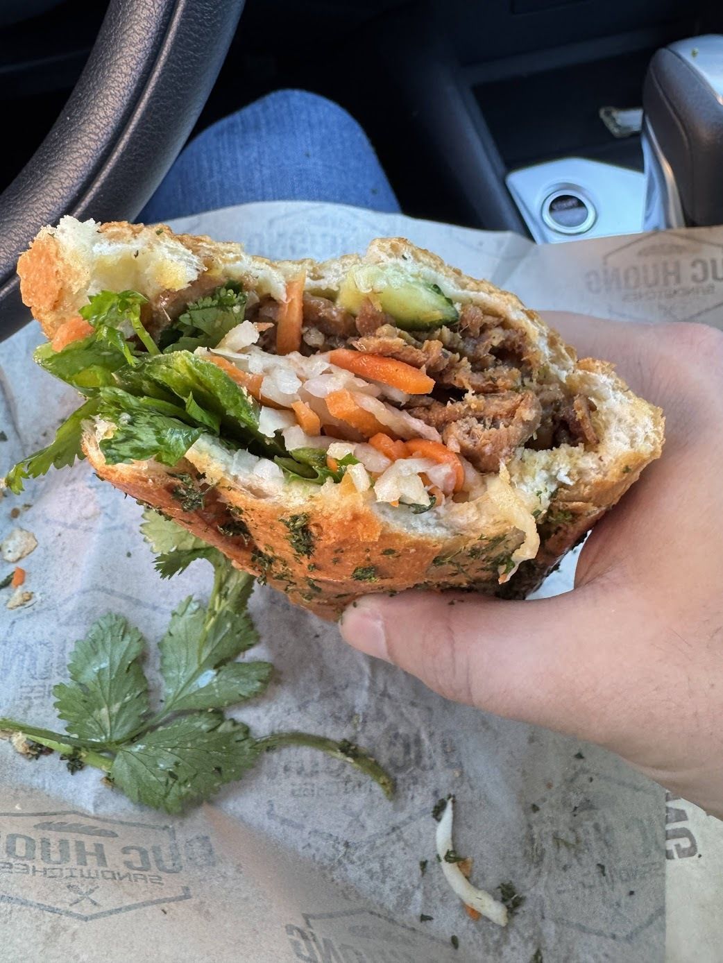 But Duc Huong offers banh mi with a garlic bread baguette. It takes an already flavorful sandwich and gives it yet another gear and a taste that pairs perfectly with the slightly sour pickle and the slightly sweet, meaty grilled pork.