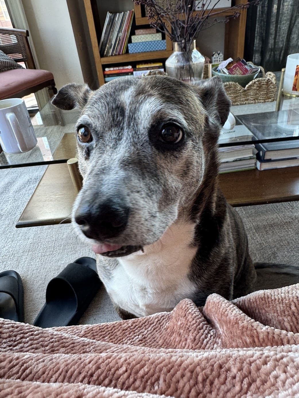 Peach, the mascot of this newsletter, is curious about this soccer stuff but needs her dad to make up for his trip with extra snuggles.