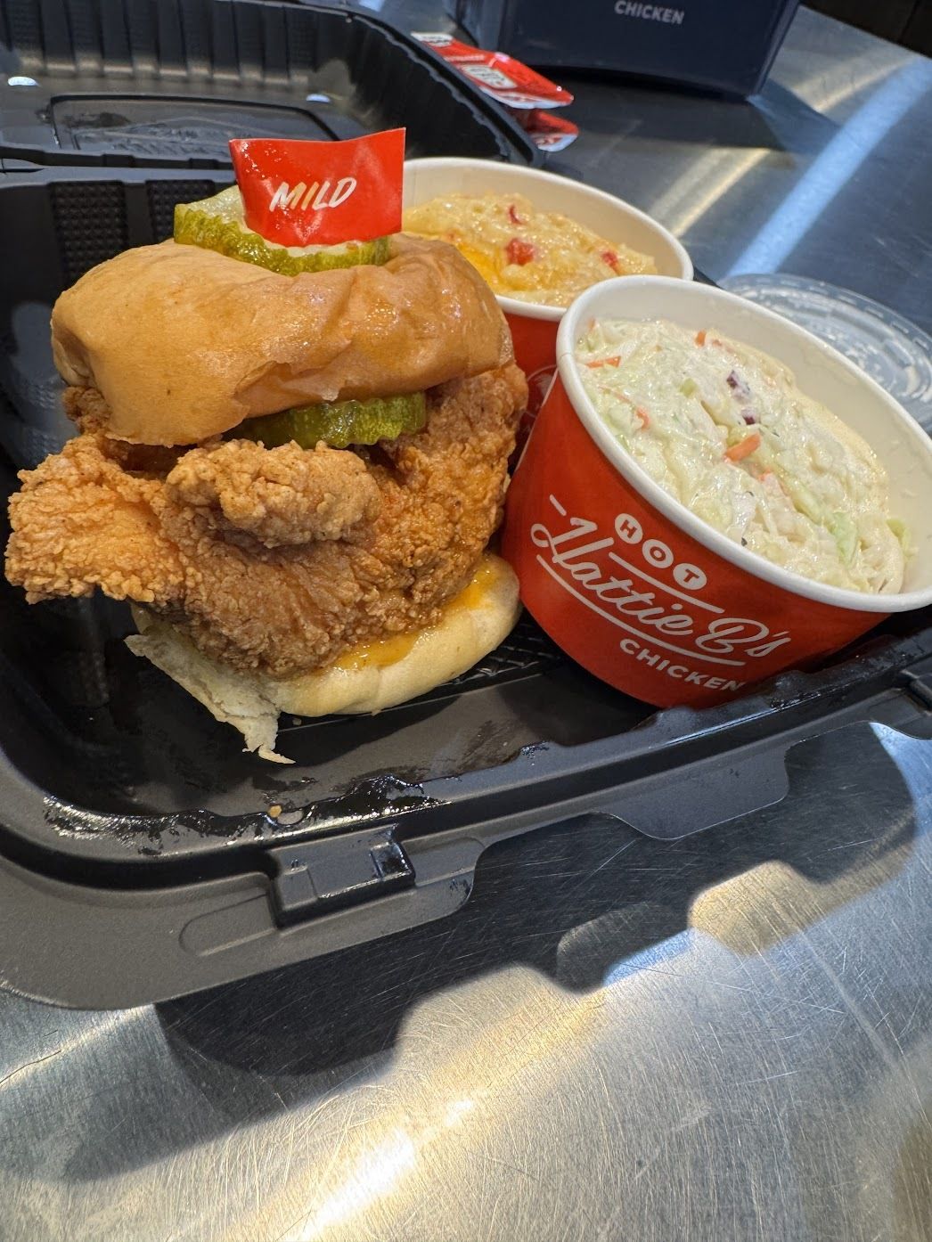 I had their hot chicken sandwich, going for a version of it that was not especially spicy to avoid having too many issues on my flight home.