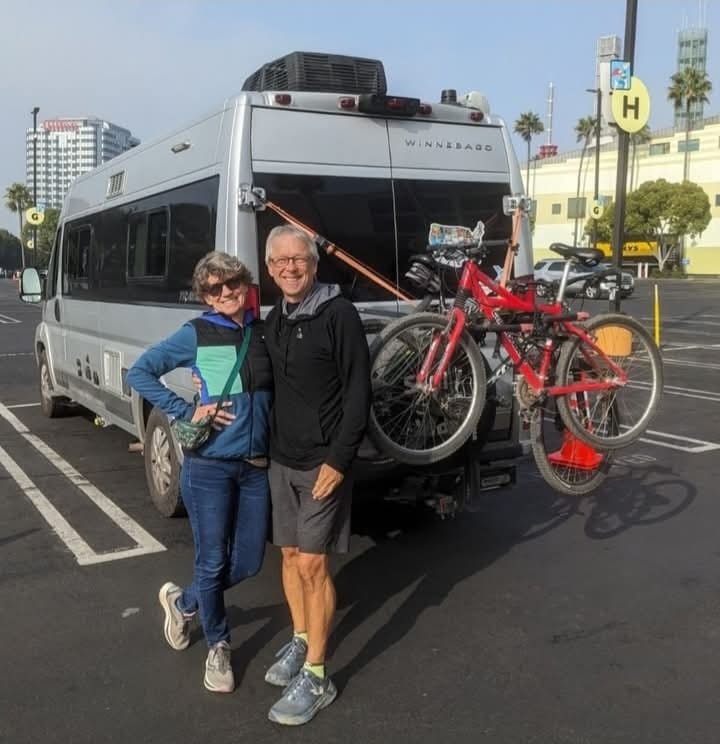Pam and her husband Glenn, in front of their van. (Image via Pam Cornell)