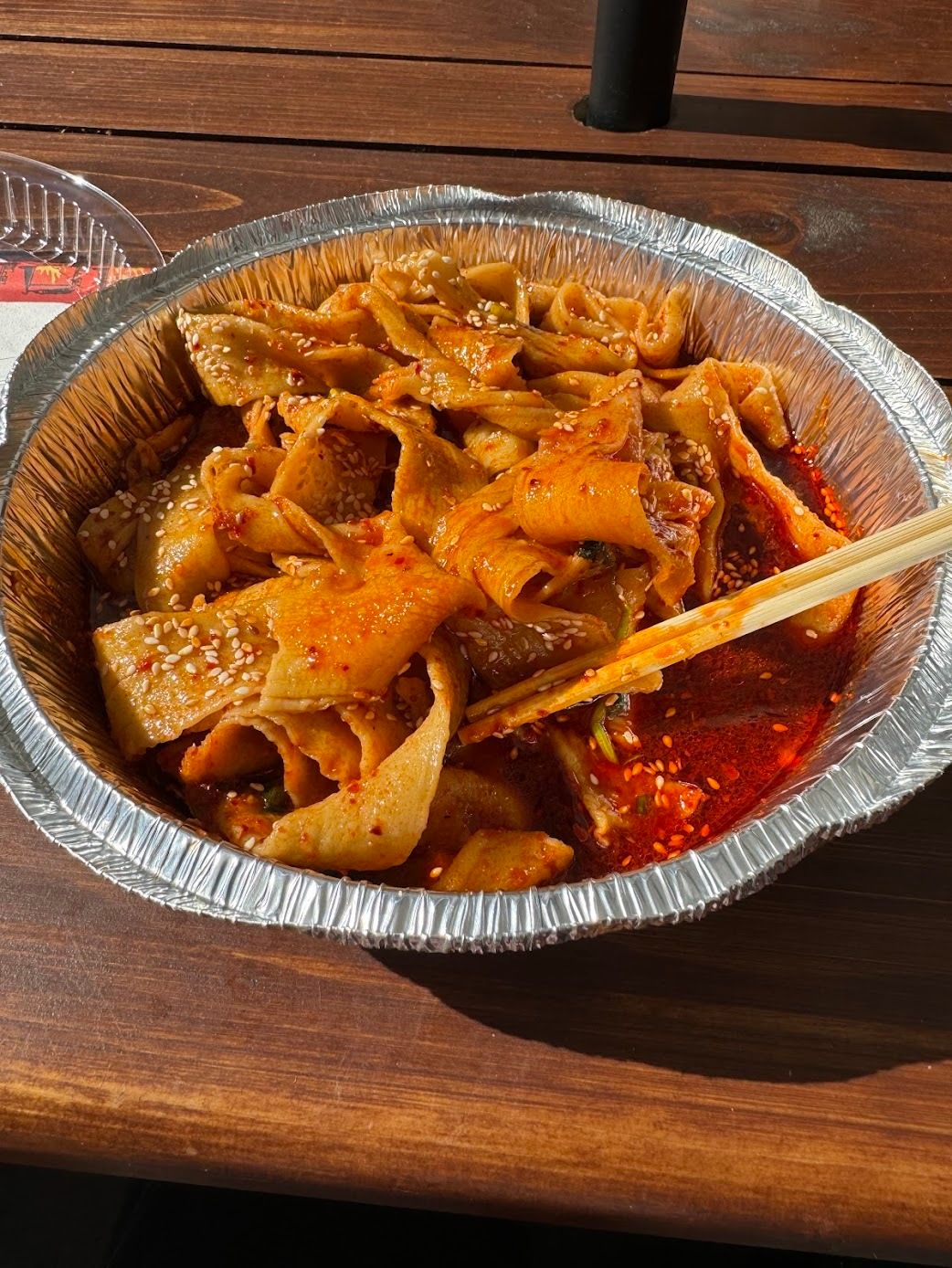 I ordered the Biang Biang Noodles, a dish with thick, wide noodles served with a spicy mala sauce and topped with sesame seeds.